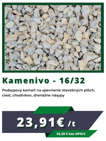 Ponúkame široký výber kameniva – štrk, piesok a makadám vhodný na stavby, úpravy terénu či záhrady. Tovar je dostupný priamo na našej predajni alebo si ho môžete pohodlne objednať s možnosťou doručenia až k vám domov, prípadne osobného odberu.
